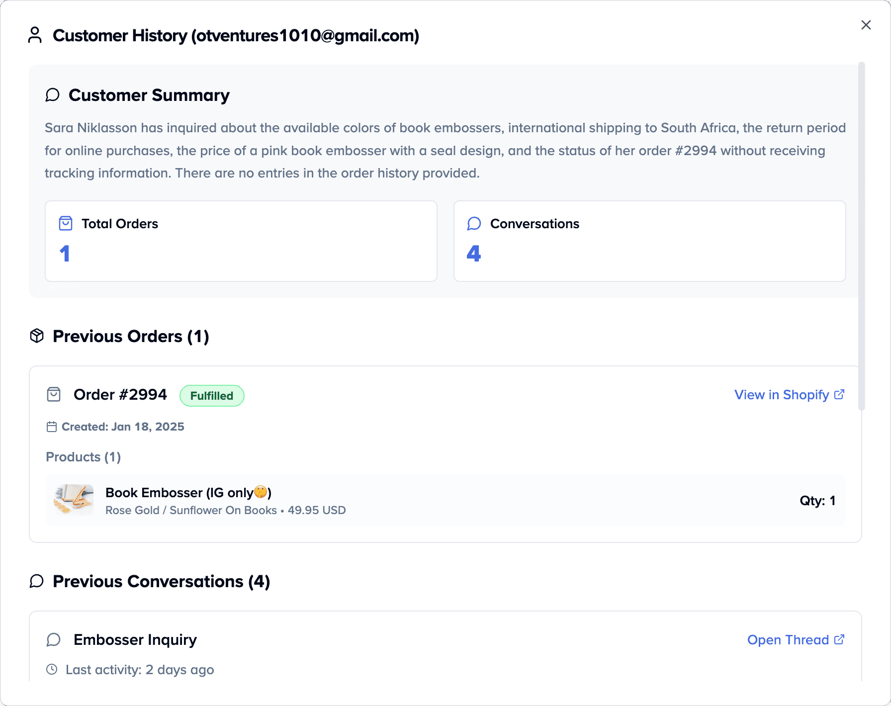 View the crucial context and customer history behind each personalized response.